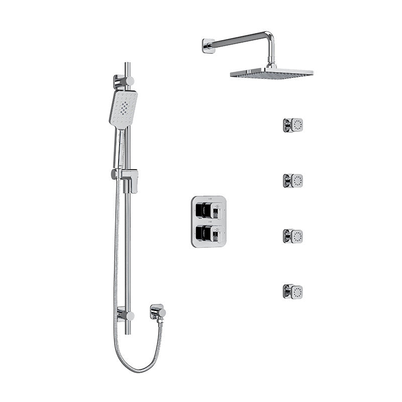 Riobel Equinox Type T/P Double Coaxial System with Hand Shower Rail, 4 Body Jets and Shower Head Chrome