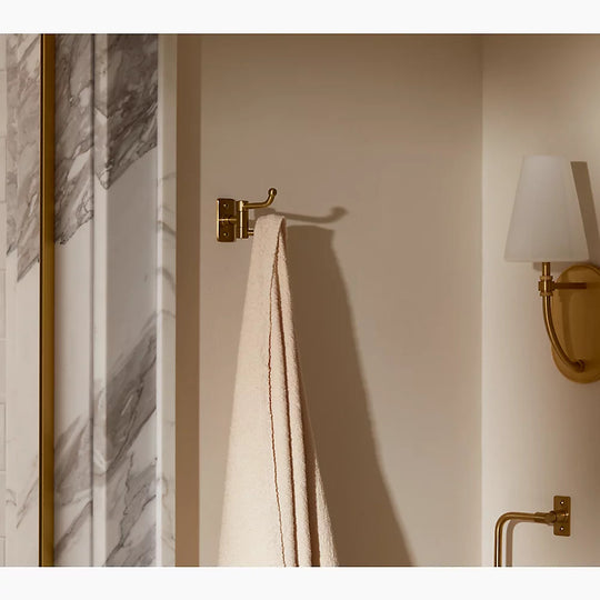Kohler Castia™ by Studio Mcgee Double Robe Hook - Vibrant Brushed Moderne Brass Drawing inspiration from the archives, the Castia bathroom faucet and accessory collection from Kohler x Studio McGee combines classic and modern influences in...Sale price $215.00Regular price $268.00Sale price $215.00Regular price $268.00