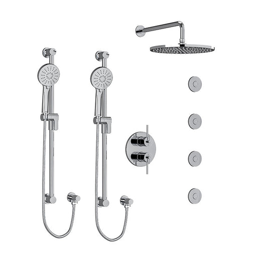 Riobel CS Type T/P 3/4" Double Coaxial System with 2 Hand Shower Rails, 4 Body Jets and Shower Head Chrome