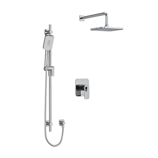 Riobel Equinox Type T/P (Thermostatic/Pressure Balance) 1/2 Inch Coaxial 3-Way System With Hand Shower Rail Shower Head And Spout Chrome Trim
