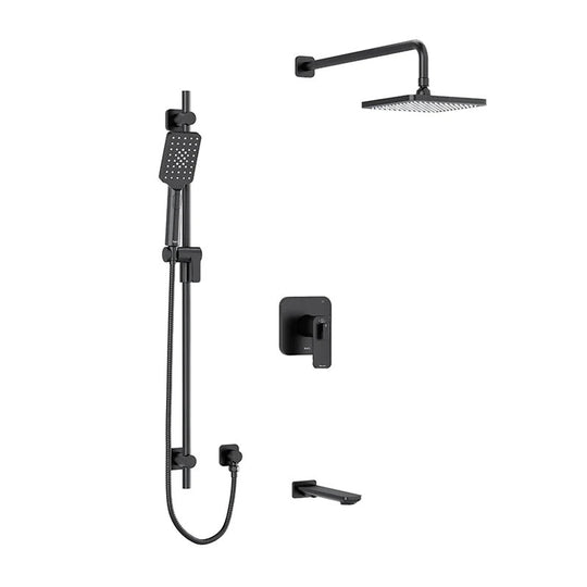 Riobel Equinox Type T/P (Thermostatic/Pressure Balance) 1/2 Inch Coaxial 3-Way System With Hand Shower Rail Shower Head And Spout Matt Black
