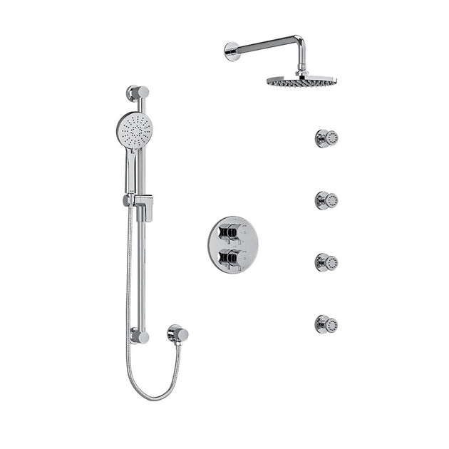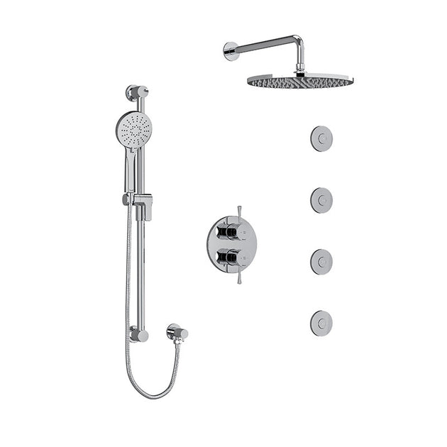 Riobel CS Type T/P 1/2" Coaxial 3-Way System, Hand Shower Rail, Elbow Supply, Shower Head and 2 Body Jets Chrome