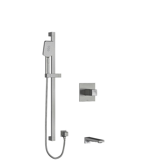 Riobel Reflet 1/2" 2-Way Type T/P Coaxial System with Spout and Hand Shower Rail Brushed Chrome