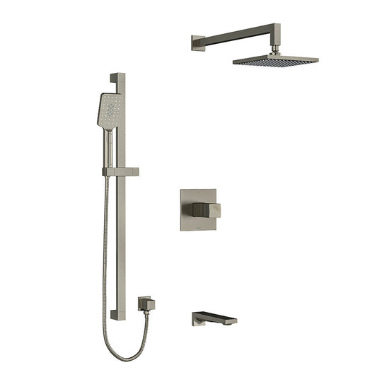 Riobel Reflet Type T/P 1/2" Coaxial 3-Way System with Hand Shower Rail, Shower Head and Spout Brushed Nickel
