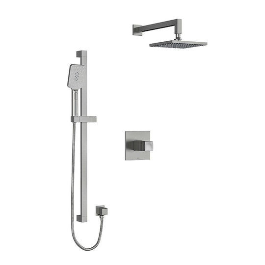 Riobel Reflet Type T/P 1/2" Coaxial 3-Way System with Hand Shower Rail, Shower Head and Spout Brushed Chrome