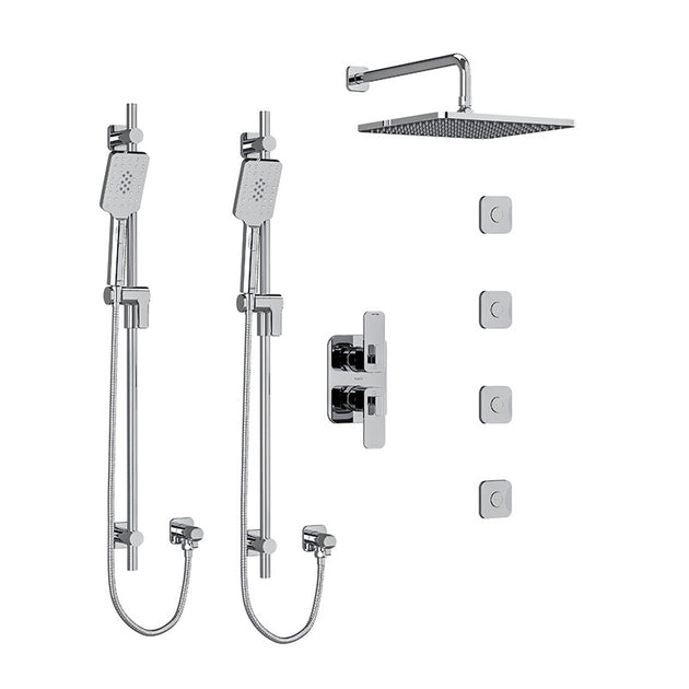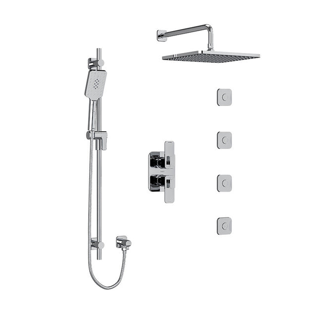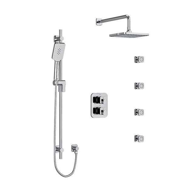 Riobel Equinox Type T/P 1/2" Coaxial 3-Way System, Hand Shower Rail, Elbow Supply, Shower Head and 2 Body Jets Chrome
