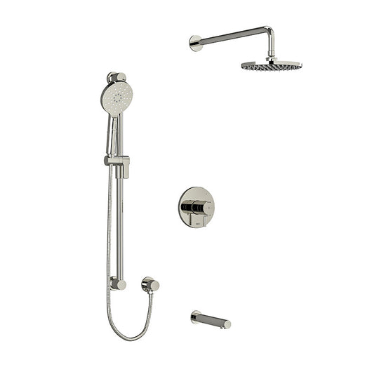 Riobel Riu Type T/P 1/2" Coaxial 3-Way System with Hand Shower Rail, Shower Head and Spout Polished Nickel