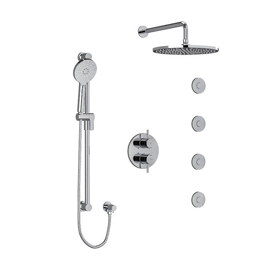 Riobel Riu Type T/P 1/2" Coaxial 3-Way System, Hand Shower Rail, Elbow Supply, Shower Head and 2 Body Jets Chrome