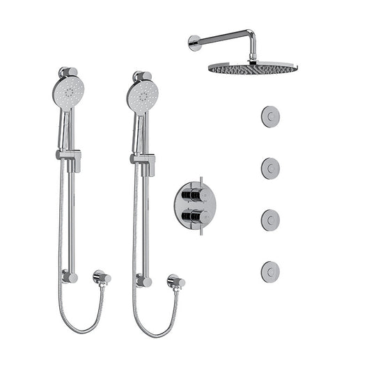 Riobel Riu Type T/P 3/4" Double Coaxial System with 2 Hand Shower Rails, 4 Body Jets and Shower Head Chrome