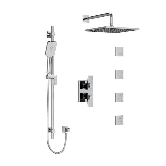 Riobel Zendo Type T/P (Thermostatic/Pressure Balance) 1/2 Inch Coaxial 3-Way System Hand Shower Rail Elbow Supply Shower Head And 2 Body Jets - Chrome KIT3545ZOTQC-EX