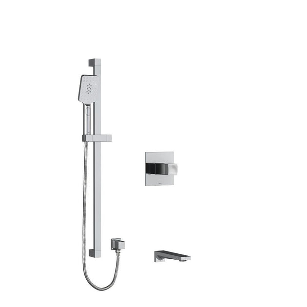 Riobel Paradox Type T/P 1/2" Coaxial 3-Way System with Hand Shower Rail, Square Shower Head and Spout Chrome