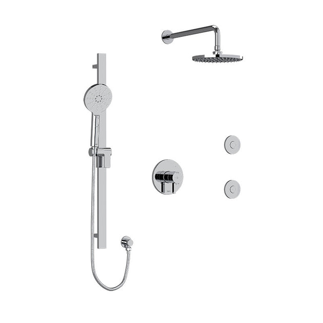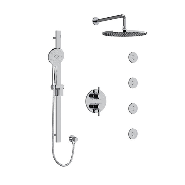 Riobel Paradox Type T/P 1/2" Coaxial 3-Way System, Hand Shower Rail, Elbow Supply, Shower Head and 2 Body Jets Chrome