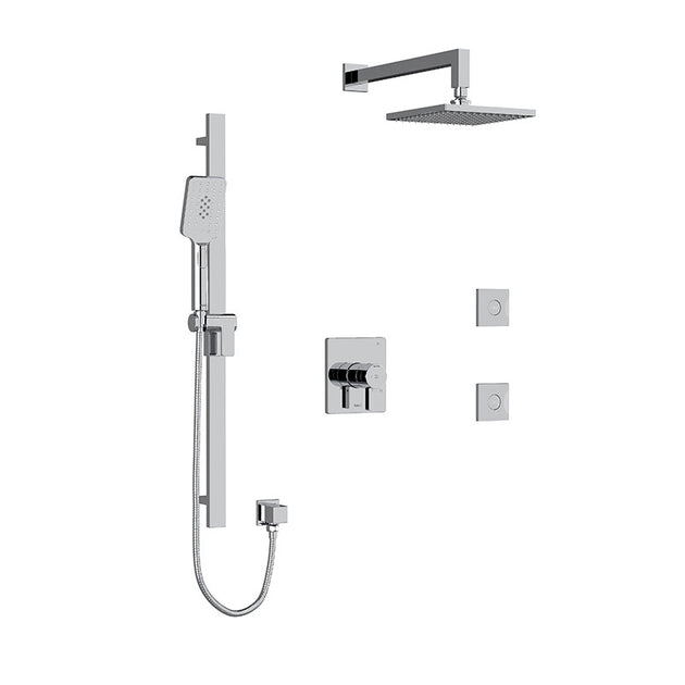 Riobel Paradox Type T/P 1/2" Coaxial 3-Way System, Hand Shower Rail, Elbow Supply, Square Shower Head and 2 Body Jets Chrome