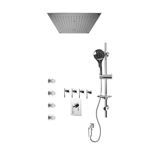 Rubi Evita 3/4" Thermostatic Shower Kit with Standard Stop Valve, Round Sliding Bar with Hand Shower, Built-in Shower Head, Stop Valve with Water Outlet, and Body Jets Chrome