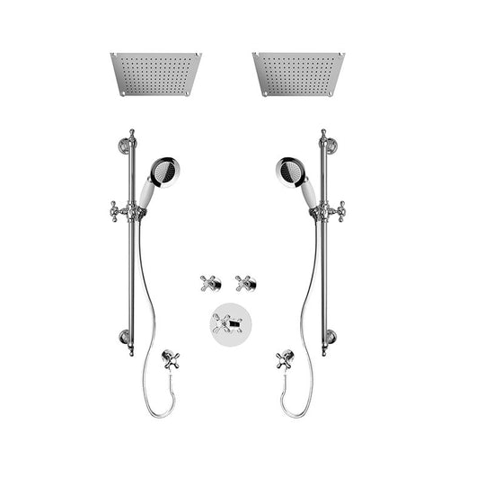 Sale -20%    Vendor: York Bath Rubi Jade 3/4" Thermostatic Shower Kit with Standard Stop Valve, Double Antique Sliding Bar with Hand Shower, Double Built-in Shower Head, and Stop Valve with Water Outlet Chrome Features Built-in rough 3/4" thermostatic mixer - 57 L/min (3 BAR) - 15 gpm (45 PSI) Standard stop valve Double Round sliding bar with hand shower Double Built-in shower head with anti-limestone nozzles - 8 L/min...Sale price $2,219.20Regular price $2,774.00Sale price $2,219.20Regular price $2,774.00
