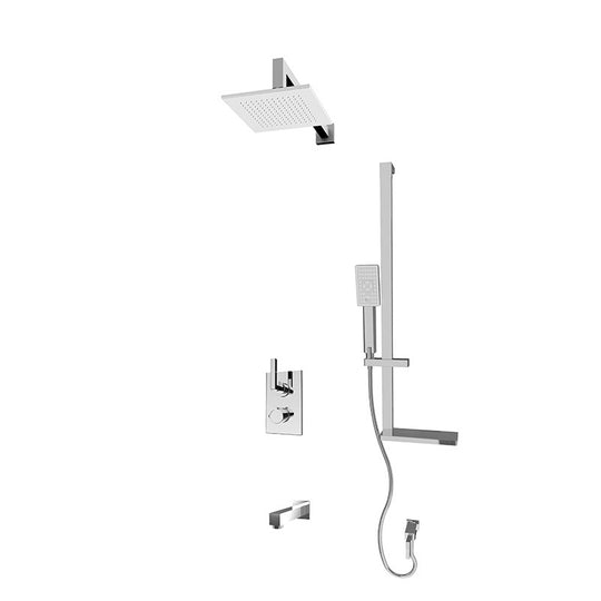 Sale -20%    Vendor: York Bath Rubi Jawa 1/2" Thermostatic Shower Kit with Square Sliding Bar with Hand Shower, Square Shower Head, Horizontal Shower Arm, Stop Valve with Water Outlet, and Wall Mounted Bathtub Spout Chrome Features Built-in 1/2" thermostatic mixer - 22 L/min (3 BAR) - 5.8 gpm (45 PSI) Square sliding bar with anti-limestone hand shower / Soap holder included Square shower head 16" Horizontal shower arm Stop valve with...Sale price $859.20Regular price $1,074.00Sale price $859.20Regular price $1,074.00