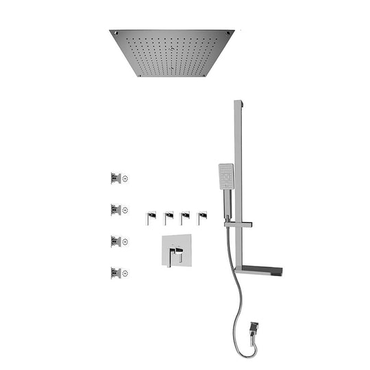 Sale -20%    Vendor: York Bath Rubi Jawa 3/4" Thermostatic Shower Kit with Standard Stop Valve, Square Sliding Bar with Hand Shower, Built-in Shower Head, Stop Valve with Water Outlet, and Body Jets Chrome Features Built-in rough 3/4" thermostatic mixer - 57 L/min (3 BAR) - 15 gpm (45 PSI) Standard stop valve Square sliding bar with anti-limestone hand shower / Soap holder included Built-in shower head with anti-limestone nozzlesTwo-zone...Sale price $2,984.80Regular price $3,731.00Sale price $2,984.80Regular price $3,731.00