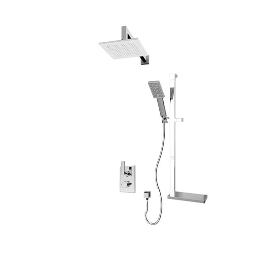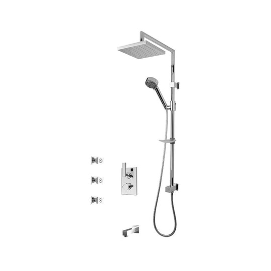 Rubi Kali 1/2" Thermostatic Shower Kit with Shower Column with Sliding Shower Bar, Hand Shower and Square Shower Head, Body Jets, and Wall Mounted Bathtub Spout Chrome