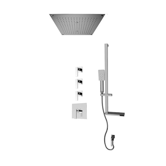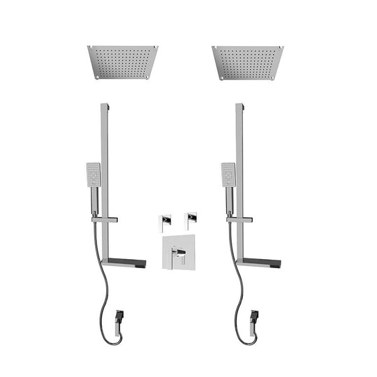 Rubi Kali 3/4" Thermostatic Shower Kit with Standard Stop Valve, Double Square Sliding Bar with Hand Shower, Double Built-in Shower Head, and Stop Valve with Water Outlet Chrome