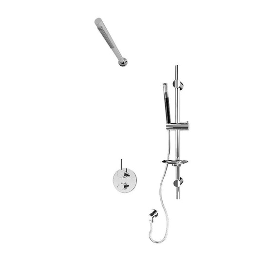 Rubi Kronos 1/2" Thermostatic Shower Kit with Round Sliding Bar with Hand Shower, CIRRUS Built-in Shower Head, and Round Elbow Connector with Water Outlet Chrome