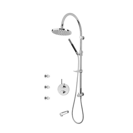 Rubi Kronos 1/2" Thermostatic Shower Kit with Shower Column with Sliding Shower Bar, Hand Shower and Round Shower Head, Body Jets, and Wall Mounted Bathtub Spout Chrome