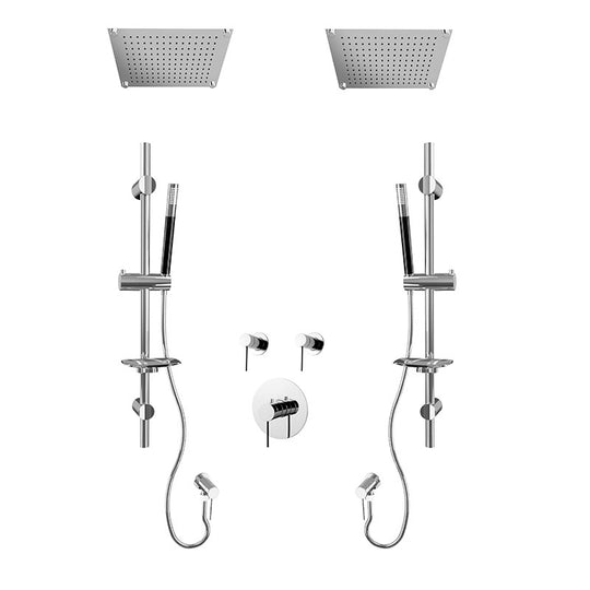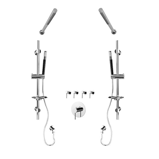 Rubi Kronos 3/4" Thermostatic Shower Kit with Standard Stop Valve, Double Round Sliding Bar with Hand Shower, Double Built-in Shower Head, and Stop Valve with Water Outlet Chrome