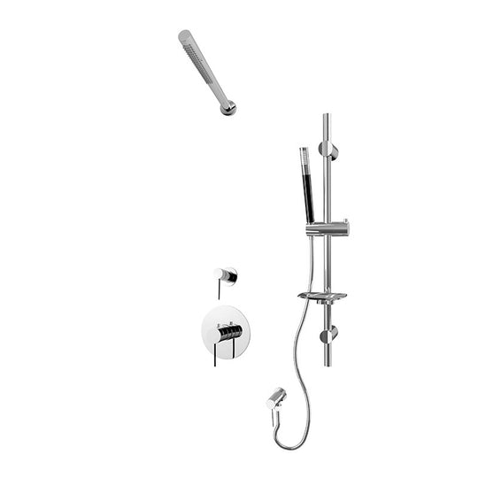 Rubi Kronos 3/4" Thermostatic Shower Kit with Standard Stop Valve, Round Sliding Bar with Hand Shower, Round Shower Head, Vertical Shower Arm, and Stop Valve with Water Outlet Chrome