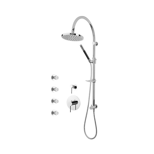 Rubi Kronos 3/4" Thermostatic Shower Kit with Standard Stop Valve, Shower Column with Sliding Shower Bar, Hand Shower and Round Shower Head, and Body Jets Chrome