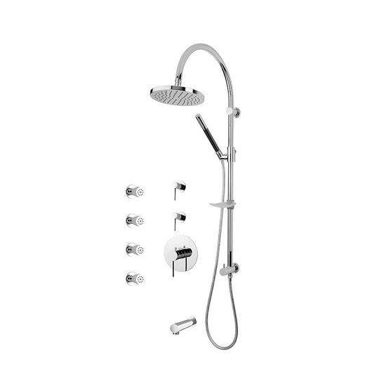 Rubi Kronos 3/4" Thermostatic Shower Kit with Standard Stop Valve, Shower Column with Sliding Shower Bar, Hand Shower and Round Shower Head, Body Jets, and Wall Mounted Bathtub Spout Chrome