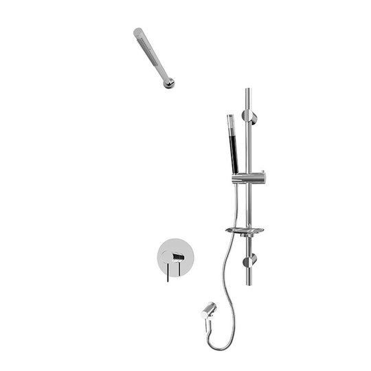 Rubi Kronos Pressure Balanced Shower Kit with Round Sliding Bar with Hand Shower, Wall Mounted Solid Brass Shower Head, and Stop Valve with Water Outlet Chrome