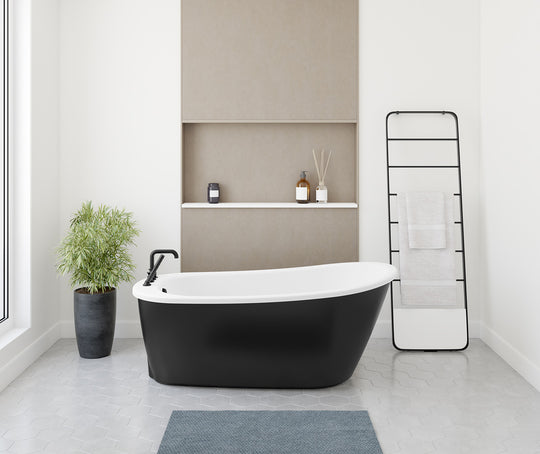 Sax 6032 AcrylX Freestanding End Drain Bathtub in White with Black Skirt