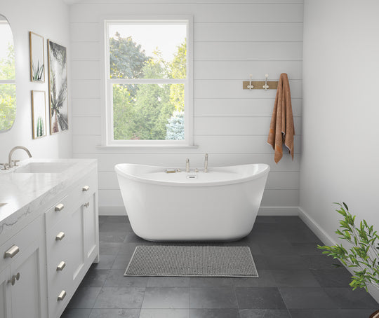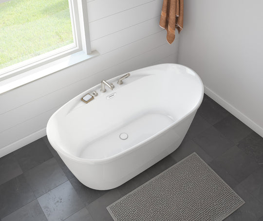 Suna 58 x 32 AcrylX Freestanding Center Drain Bathtub in White with White Skirt