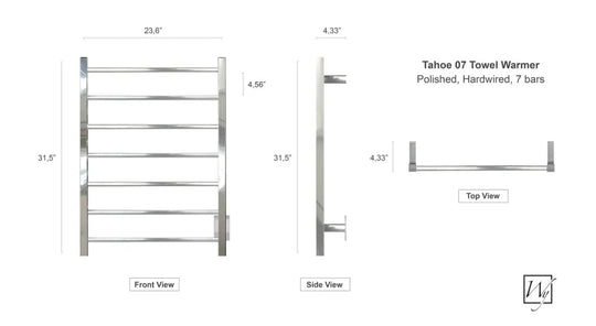 WarmlyYours the Tahoe Towel Warmer 7 Bars Hardwired polished chrome