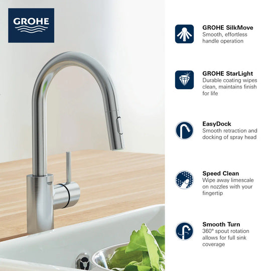 Grohe Concetto Single-Handle Pull Down Kitchen Faucet StarLight Chrome