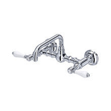 ROHL Acqui Wall Mount Bridge Bathroom Faucet - Polished Chrome With White Porcelain Lever Handle - A1423LPAPC-2