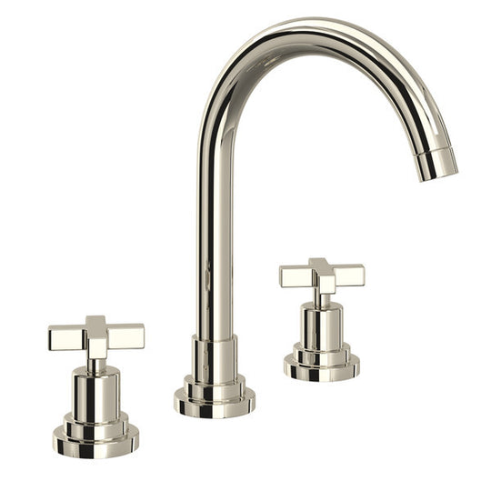 ROHL Lombardia C-Spout Widespread Bathroom Faucet - Polished Nickel With Cross Handle - A2208XMPN-2