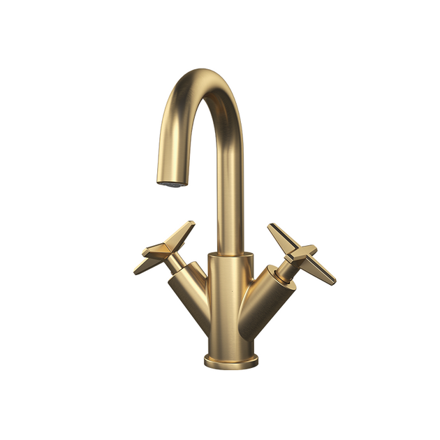Rubi Lexa Washbasin Faucet With Cross Handles - Brushed Gold