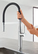 - EASY TO CLEAN: Kitchen faucet sprayer features GROHE SpeedClean rubber nozzles to quickly wipe away limescale with your fingertip