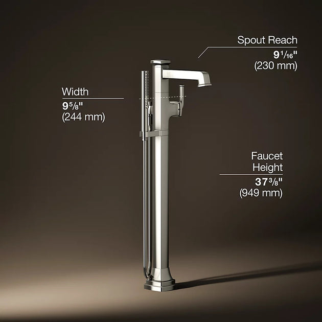 Kohler Riff® Floor-mount Bath Filler Trim With Handshower - Polished Chrome