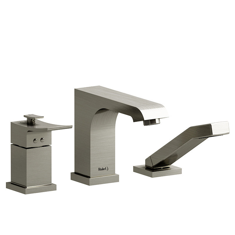 Riobel Zendo 3-Piece Type T/P (Thermostatic/Pressure Balance) Coaxial Deck-Mount Tub Filler with Hand Shower Brushed Nickel