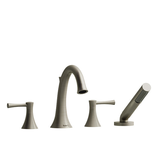 Riobel Edge 4-Piece Deck-Mount Tub Filler with Hand Shower Brushed Nickel