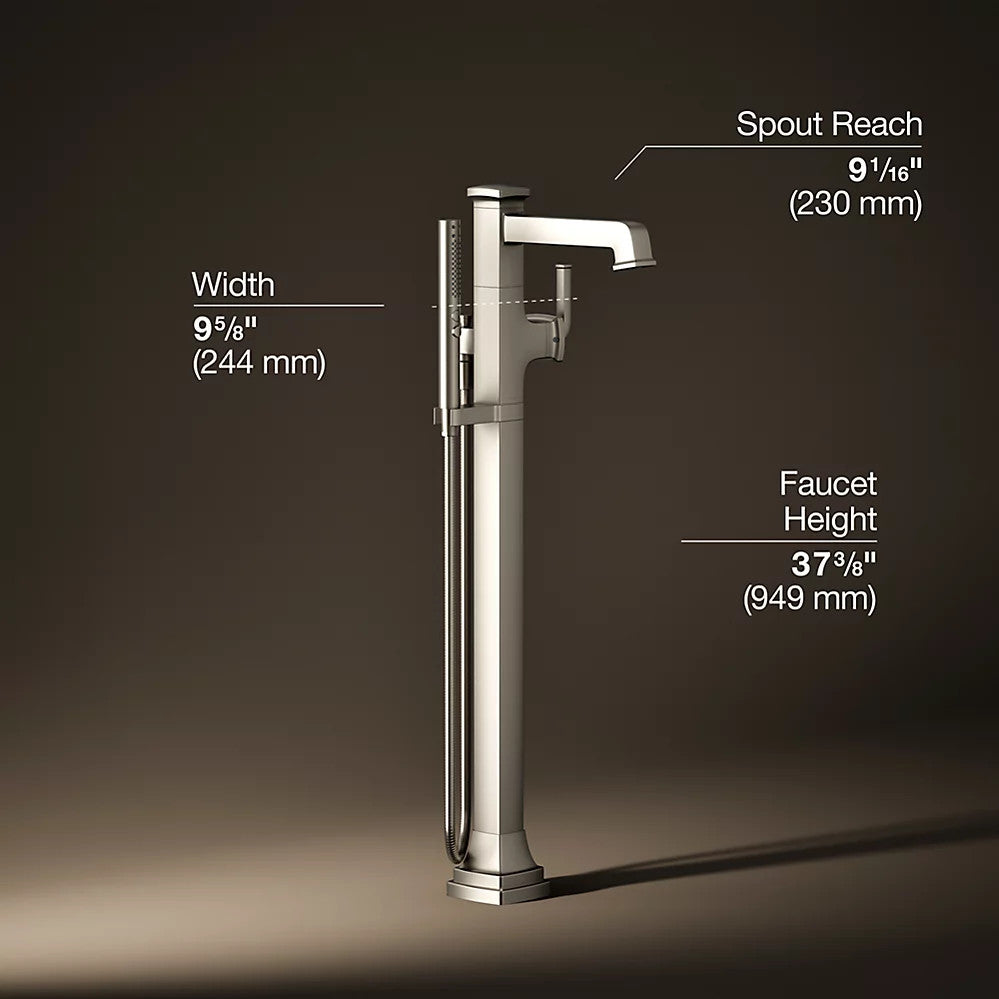 Kohler Riff® Floor-mount Bath Filler Trim With Handshower - Polished Chrome