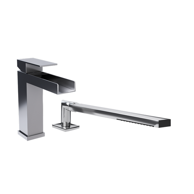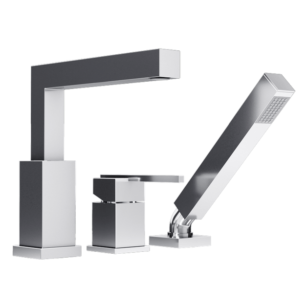 Riobel Edge 4-Piece Deck-Mount Tub Filler with Hand Shower Chrome