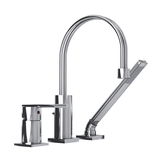 Riobel Paradox 3-Piece Deck-Mount Tub Filler with Hand Shower Chrome