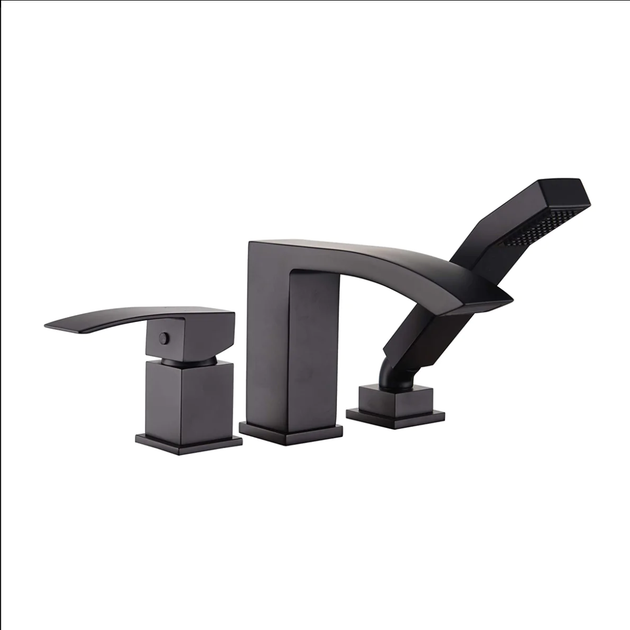Three Hole Deck Mounted Bathtub Faucet Matte Black