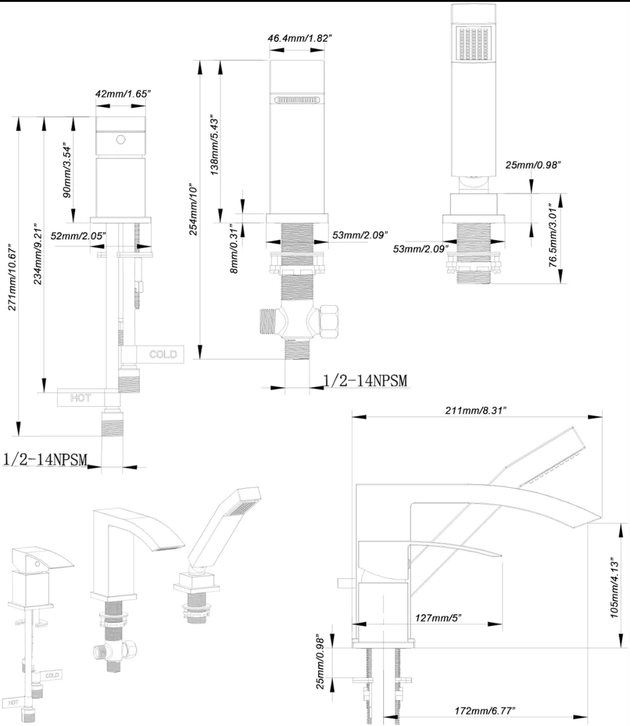 Rubi Billie Two-Piece Bathtub Faucet with Hand Shower Chrome