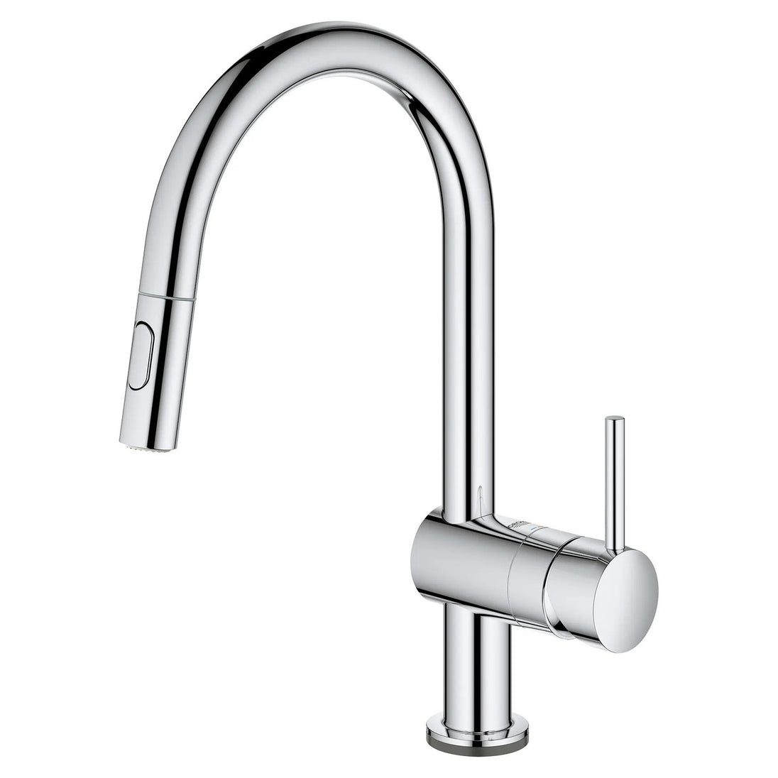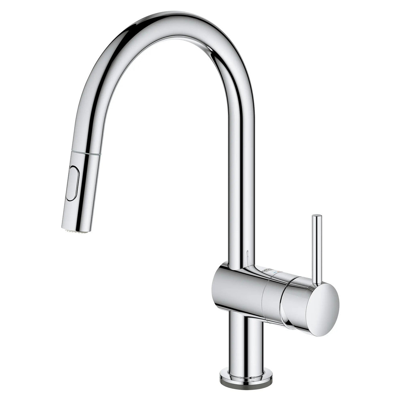The GROHE Minta Single-Handle Pull-Down Dual-Spray Kitchen Faucet is sleek and modern. With a convenient pull-down spray head featuring dual spray functions, you can easily toggle between regular stream and a gentler spray for maximum versatility, from filling pots to rinsing the sink. This single-hole kitchen faucet is meticulously crafted with a 360° swivel spout and lever handle that offers precise control of water pressure and temperature.