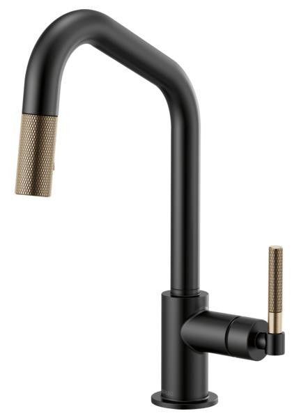Brizo Litze Kitchen Pull Down Faucet with Angled Spout and Knurled Handle Matte Black/Luxe Gold Finish