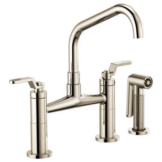 LITZE™ BRIDGE FAUCET WITH ANGLED SPOUT AND INDUSTRIAL HANDLE The Litze™ Kitchen Collection melds a clean, contemporary sensibility with a crafted style to strike the perfect balance. FEATURES Includes matching side sprayer 3-hole installation Solid...Sale price $1,395.00Regular price $1,860.00Sale price $1,395.00Regular price $1,860.00