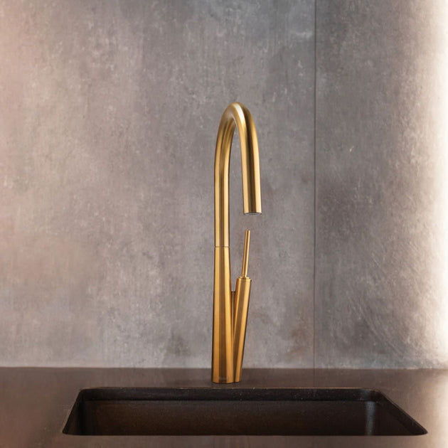 Riobel Solstice Kitchen Faucet with Spray Brushed Gold